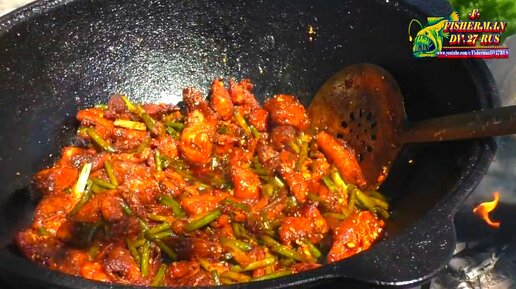 Вкусное жаркое из филе толстолобика, по-Китайски , в казане.