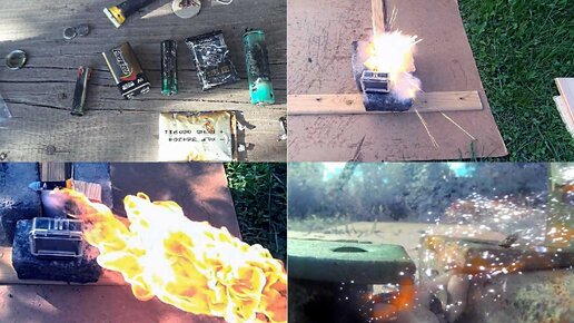 Нагреваю пиропатрон из хлопушки, тюбик клея, батарейки, аккумуляторы.