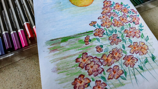 ЛЕТО КАРАНДАШАМИ // ПЕЙЗАЖ // РИСОВАНИЕ ДЛЯ ДЕТЕЙ // ПРОСТОЙ РИСУНОК КАРАНДАШАМИ