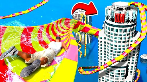 ОГРОМНЫЙ СПУСК СО СКОЛЬЗКОЙ ГОРКИ в АКВАПАРКЕ в ГТА 5 МОДЫ! ГОРКИ и ОБЗОР МОДА в GTA 5 ВИДЕО