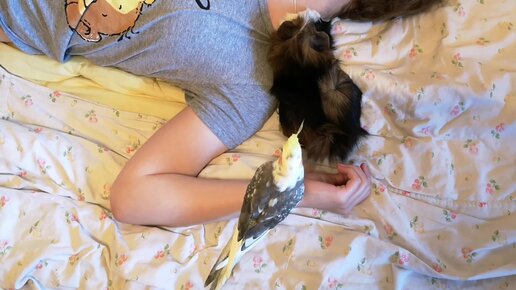 Легли отдохнуть все вместе, только вопрос: Чей "комок нервов" оказался в итоге всех больше?*... 🤣🤗🐹🦜