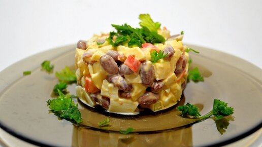 Салат С КРАБОВЫМИ ПАЛОЧКАМИ И ФАСОЛЬЮ. Рецепт салата на каждый день.
