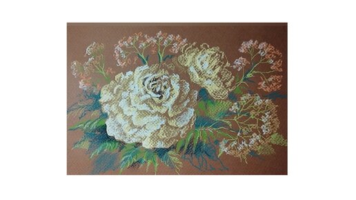 Букет с белым пионом. Рисунок сухой пастелью на тонированной бумаге.
