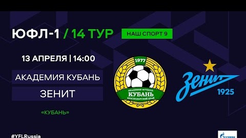 ЮФЛ-1. Академия Кубань (Краснодар) - Зенит (Санкт-Петербург). 14-й тур.