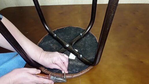 Перетяжка табурета своими руками. Ремонт мебели. [Перетяжка мебели своими руками]