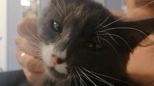 Только послушайте как урчит! Котенок Мишка проявляет свои чувства к человеку