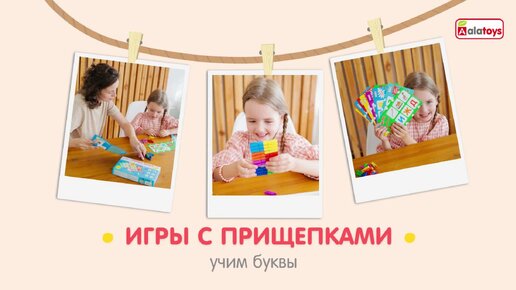 Учим буквы с прищепками Alatoys развивающая деревянная Монтессори игрушка для малышей ПР06