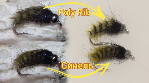 Болотные мушки на крупного хариуса. Сравнение материалов синели и Poly Rib под водой.