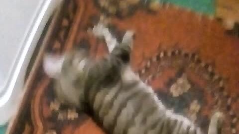 Случайно засняла Каспера.Получилось смешно. Котик балуется.Переворачивает коврик.