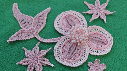 1 часть. Красивый цветок с бусинками из трех лепестков. Мотив ирландского кружева. Вяжем вместе.