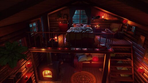 АСМР засыпай под звуки дождя и потрескиванием камина, в уютном домике