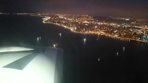 Посадка рано утром в Стамбуле, вид из самолета, красота