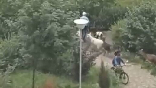 В Рязани в сквере на улице Княжье поле пожилой мужчина выгуливал козочек