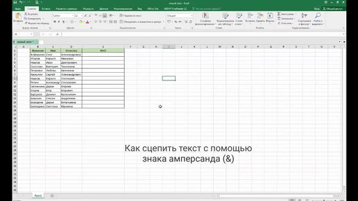 Как в excel сцепить текст с помощью знака амперсанда (&)?