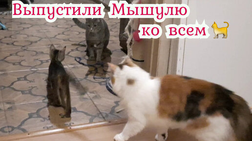 Выпустили Мышулю из комнаты к остальным кошкам)