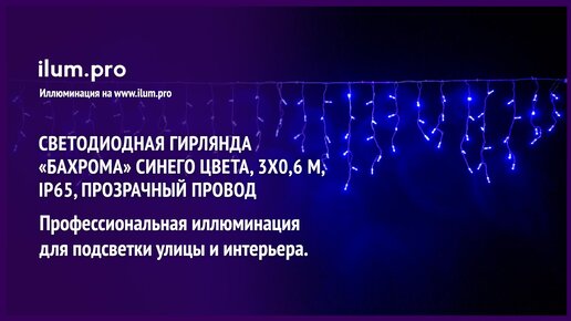 Светодиодная гирлянда «Бахрома» синего цвета, 3х0,6 м, IP65, прозрачный провод / Айлюм Про