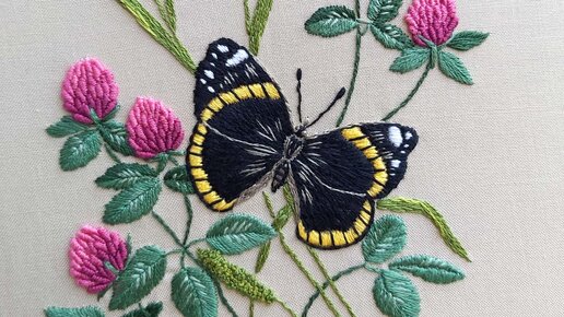 Мастер-класс по вышивке гладью "Бабочка и клевер", в продаже!
