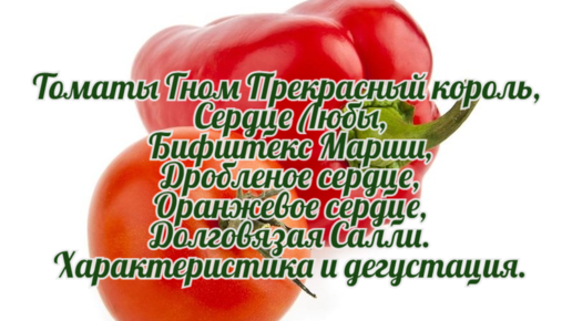 Томаты Гном Прекрасный король, Сердце Любы, Бифштекс Марши, Дробленое сердце, Оранжевое сердце, Долговязая Салли. Дегустация.