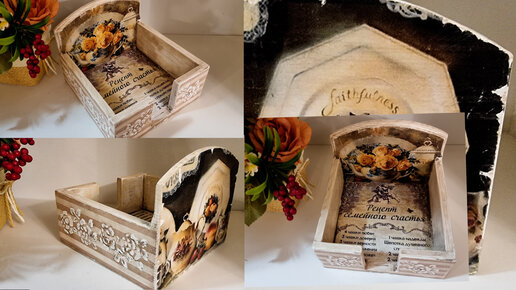 Декор салфетницы. Декупаж. Винтаж.