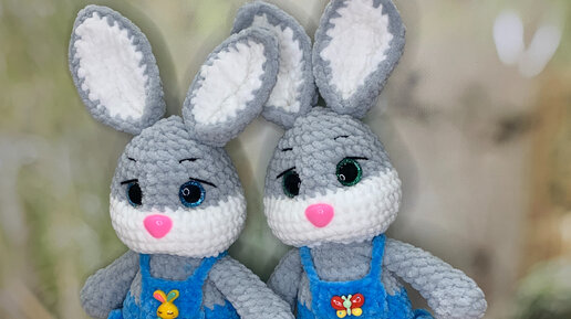 Вязаный зайчик из плюшевой пряжи. Мягкая игрушка амигуруми крючком из плюшевой пряжи.