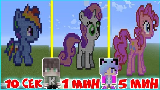 ДЕВУШКА НУБ И ПРО ПОСТРОИЛИ ПОНИ ЗА 5 МИНУТ 1 МИНУТУ И 10 СЕКУНД В МАЙНКРАФТ БИТВА ПОСТРОЕК