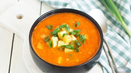 Простой и аппетитный! Томатный суп с кабачком и болгарским перцем.