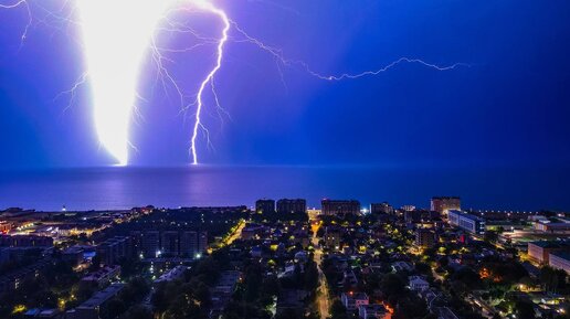 ЖУТКО КРАСИВАЯ НОЧНАЯ МОЛНИЯ В АНАПЕ