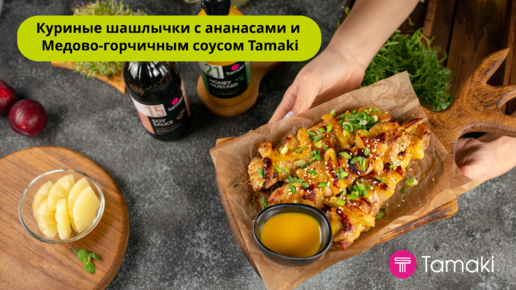Куриные шашлычки с ананасами и Медово-горчичным соусом Tamaki