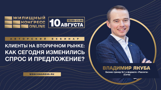 Авторский вебинар Владимира Якубы: «Клиенты на вторичном рынке: как сегодня изменились спрос и предложение?»