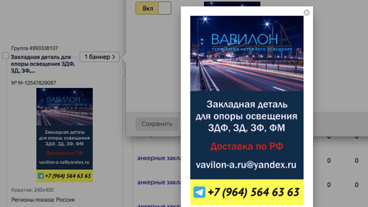 Баннер на поиске Опоры освещения, ЛЭП. ЯндексДирект