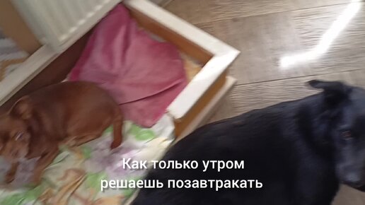Бутербродик, огурчик, кофеёк... Обычный завтрак в окружении собак