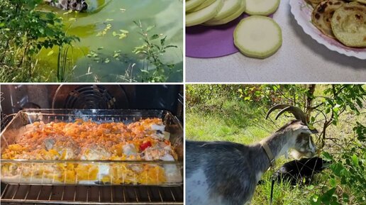 Влог: Жара, Багира пугает рыбу! Козы. Рыба с морковью вкус, как из детства!