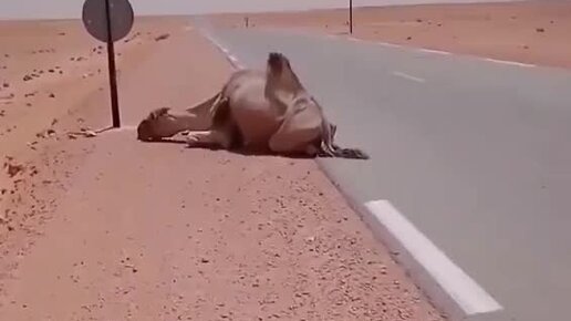 Водитель грузовика напоил водой измученного жаждой верблюда посреди пустыни