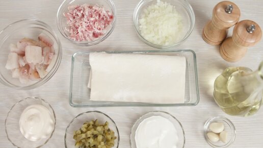 Пирожки из слоеного теста с судаком и беконом