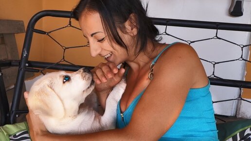 БЕЛЫЙ И ГОЛУБОГЛАЗЫЙ Щенок лабрадора 2, 5 месяца. Гетерохромия.