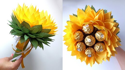 🌻 БОЛЬШОЙ ПОДСОЛНУХ с конфетами Ferrero Rocher. Сладкий букет из конфет. Подарок учителю🌻
