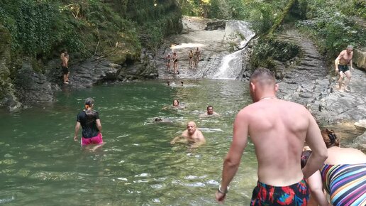 Купание в водопаде. Красивые водопады. Горы в Краснодарском крае
