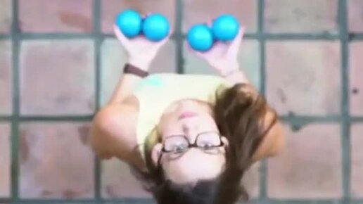 Очень способная девушка показывает, как жонглировать четырьмя шариками