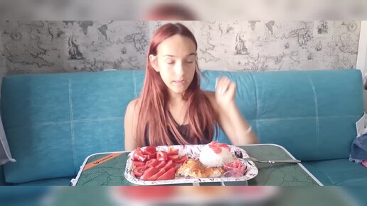 Мукбанг, курица табака с гарниром.