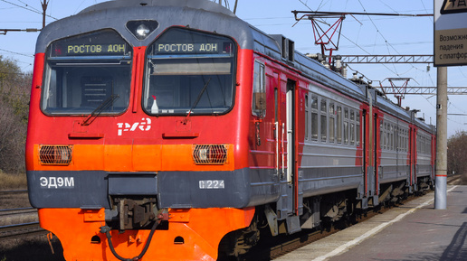 Электропоезд ЭД9М-0224 Староминская-Ростов прибывает в Батайск