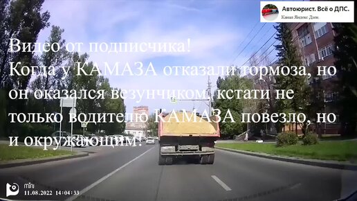 У КАМАЗА отказали тормоза, но водитель оказался везунчиком. Или вокруг него всем повезло.