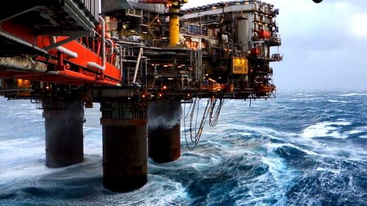 МОРСКАЯ стационарная платформа в шторм ...
