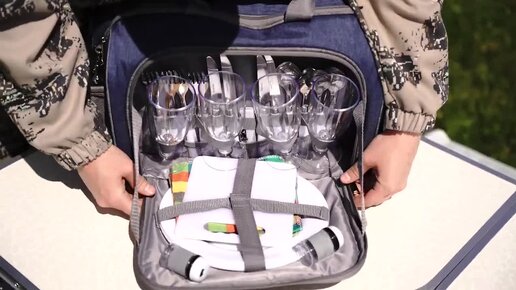 Набор для пикника на 4 персоны синий серый HS 425S 4BG Helios
