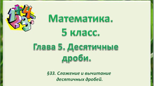 Математика 5 класс. Сложение и вычитание десятичных дробей