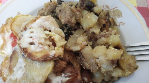 Жареная картошечка с мясом и грибами. Сытный ужин.