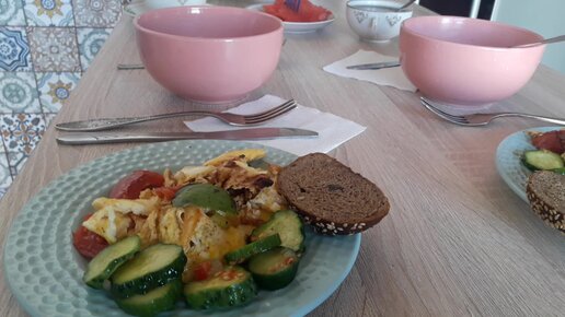Если с ужина остался салат, то на завтрак можно приготовить омлет с помидорами