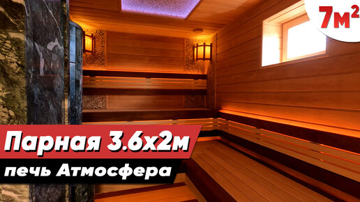Отделка парилки в бане 3,6х2м. с печью Атмосфера ПРО. Проект и 3D-дизайн парной.