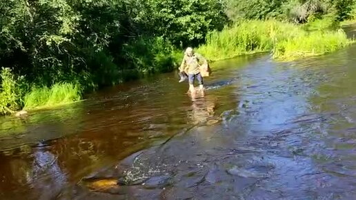 Река Курея (в Струго - Красненском районе ) форсируем в брод с грибами...