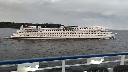 Теплоход Георгий Чичерин движется по Ладожскому озеру с острова Валаам. Запись с борта другого теплохода 12.08.2022