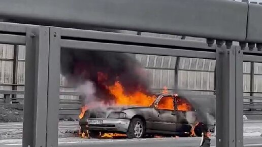 Горящий «Мерседес» на КАДе собрал пробку из «фотографов»